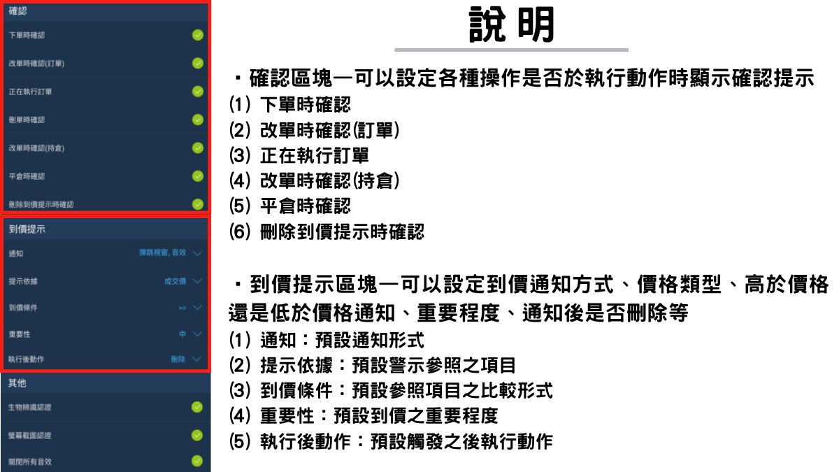 (7)停利價格:勾選後可預先設置停利出場價格。