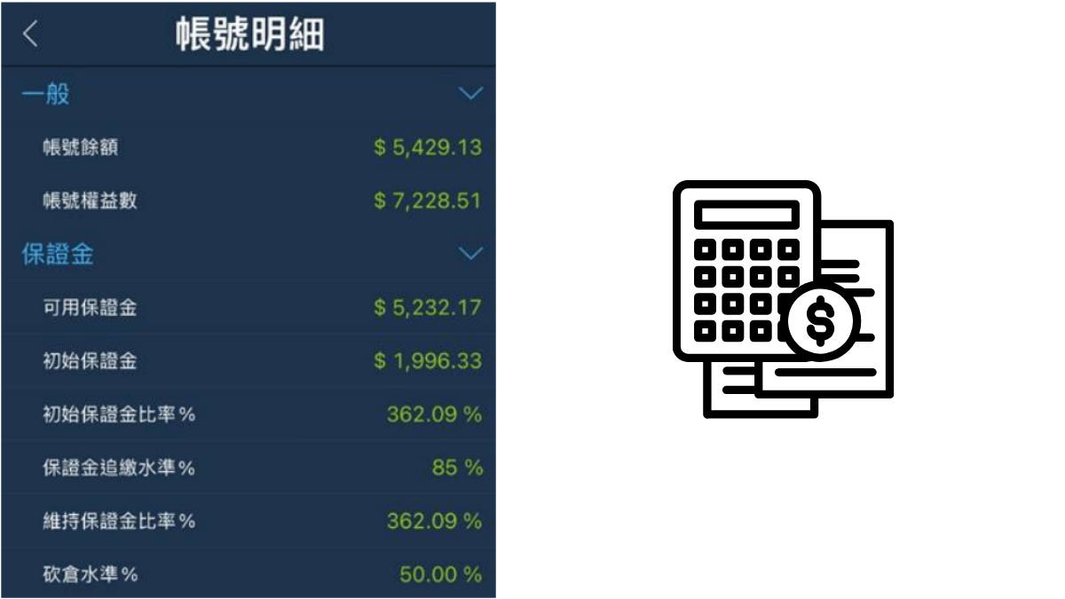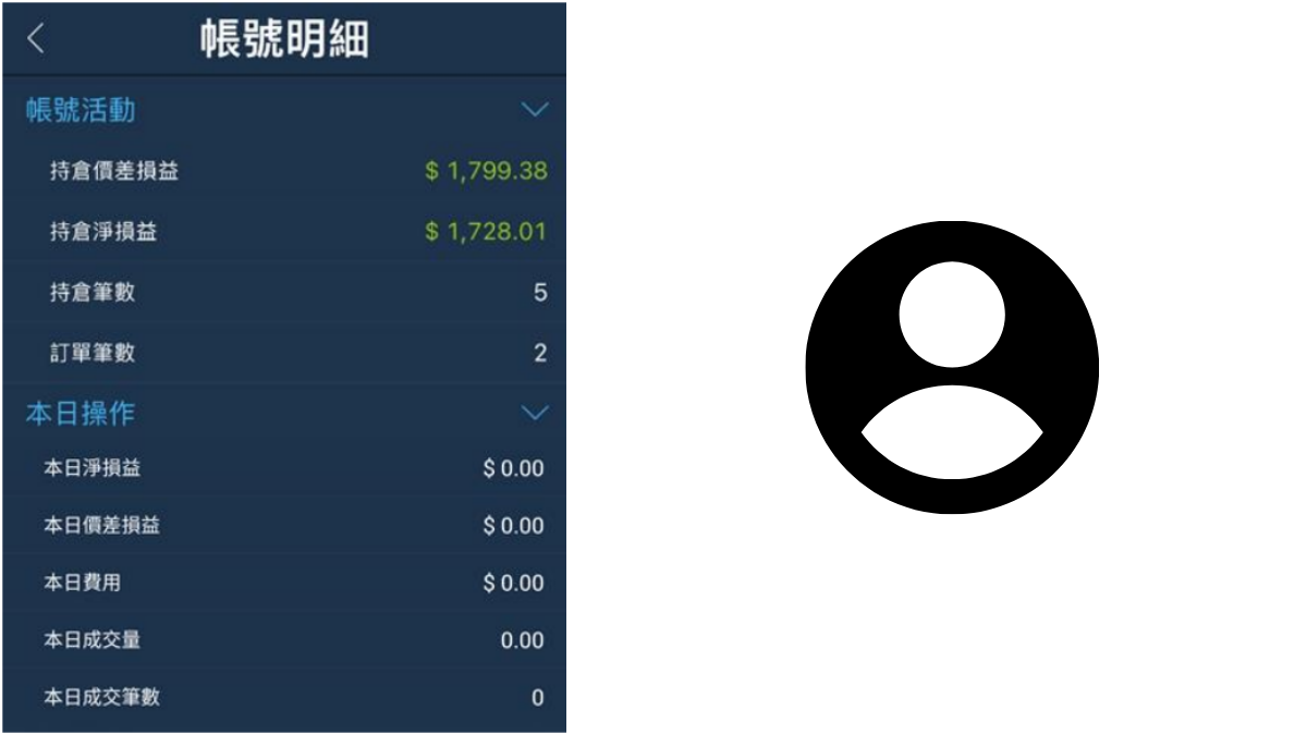 揭露當前部位之交易量、均價、損益。