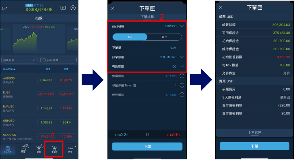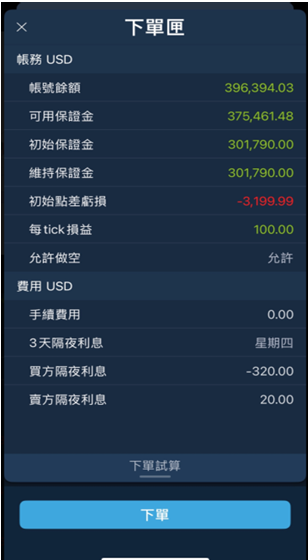 提前試算,精準預測-利用下單試算可提前試算保證金、隔夜利息