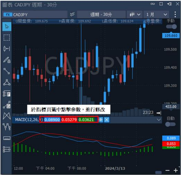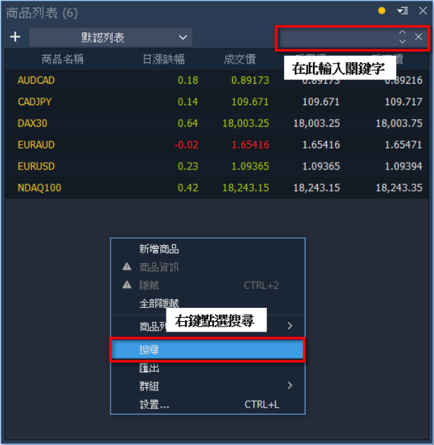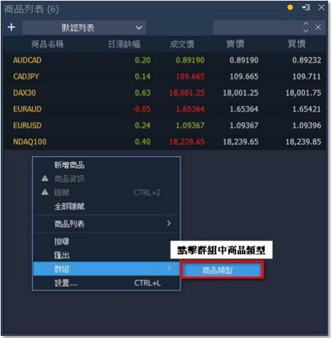 1. 點擊商品欄:於畫面圖表左上點擊商品名稱。