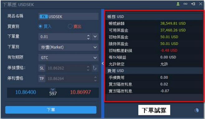 (3) 展開下單試算資訊,查看預期結果。
