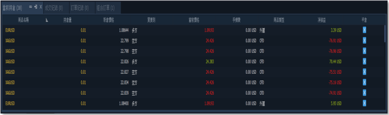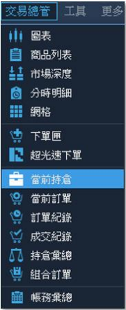 1. 點選清單:點擊交易總管【當前持倉】選項。