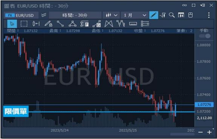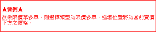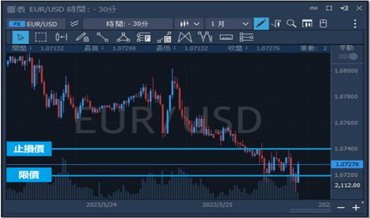 設定在價格觸及特定價格時進場。(優於當前市價的掛單)