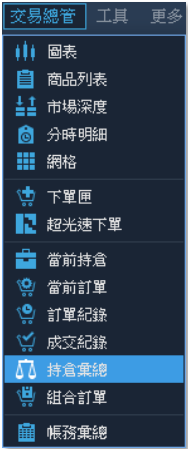 1. 點選清單:點擊交易總管【持倉彙總】選項。